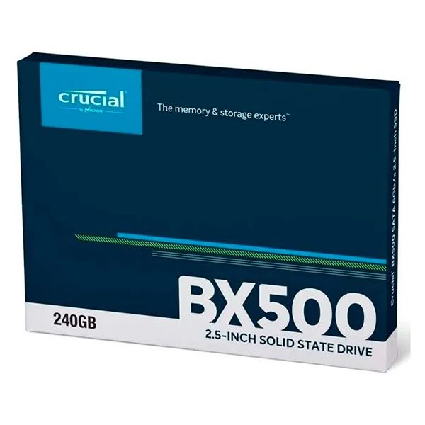 Unidad de Almacenamiento de Estado Sólido, en marca Crucial para instalación interna PC/Portátil, serieBX500, con capacidad de 240 GB, factor: 2.5″ y tasa de transferencia SATA3(6GB/s).